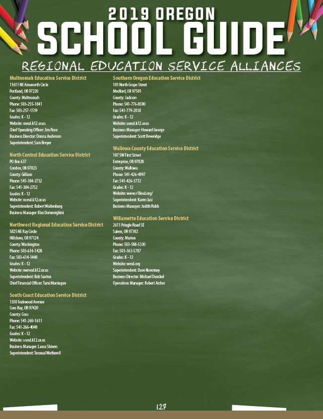 2019 OREGON SCHOOL GUIDE REGIONAL EDUCATION SERVICE ALLIANCES