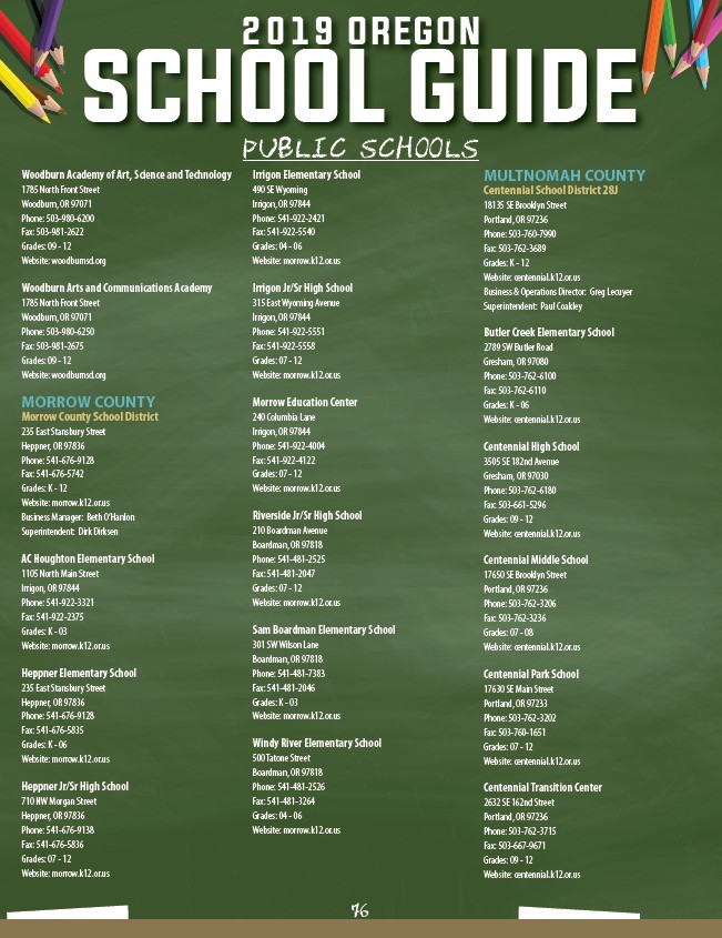 2019 OREGON SCHOOL GUIDE PUBLIC SCHOOLS